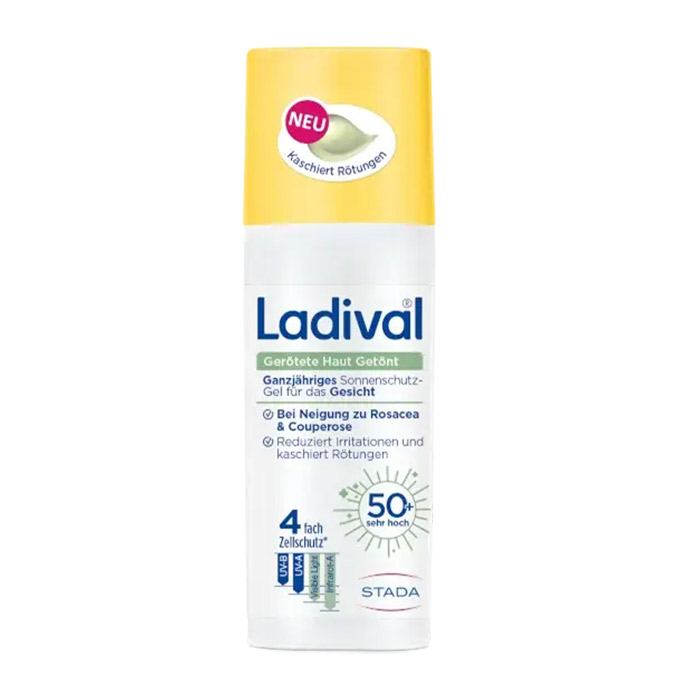 Rötungen, Brennen oder Irritationen sind typische Begleiter von Haut, die zu Rosacea oder Couperose neigt. Das Ladival® Gerötete Haut Getönt Sonnenschutz-Gel LSF 50+ wurde speziell entwickelt, um empfindliche, gerötete Gesichtshaut effektiv zu schützen und zugleich zu pflegen. Es kombiniert sehr hohen Sonnenschutz mit beruhigenden und farb-korrigierenden Eigenschaften – für ein gleichmäßiges, natürliches Hautbild.