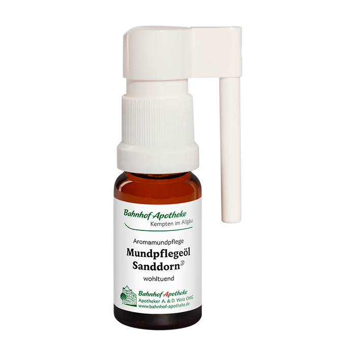 Der Einsatz von Aromamischungen und Hydrolaten bietet im Rahmen der Aromapflege die Möglichkeit, die Lebensqualität und das Wohlbefinden stark pflegebedürftiger Personen deutlich zu steigern. Das Mundpflegeöl Sanddorn pflegt die Mundschleimhaut, trägt zu ihrer Befeuchtung bei und sorgt für ein angenehmes Gefühl in der Mundhöhle.